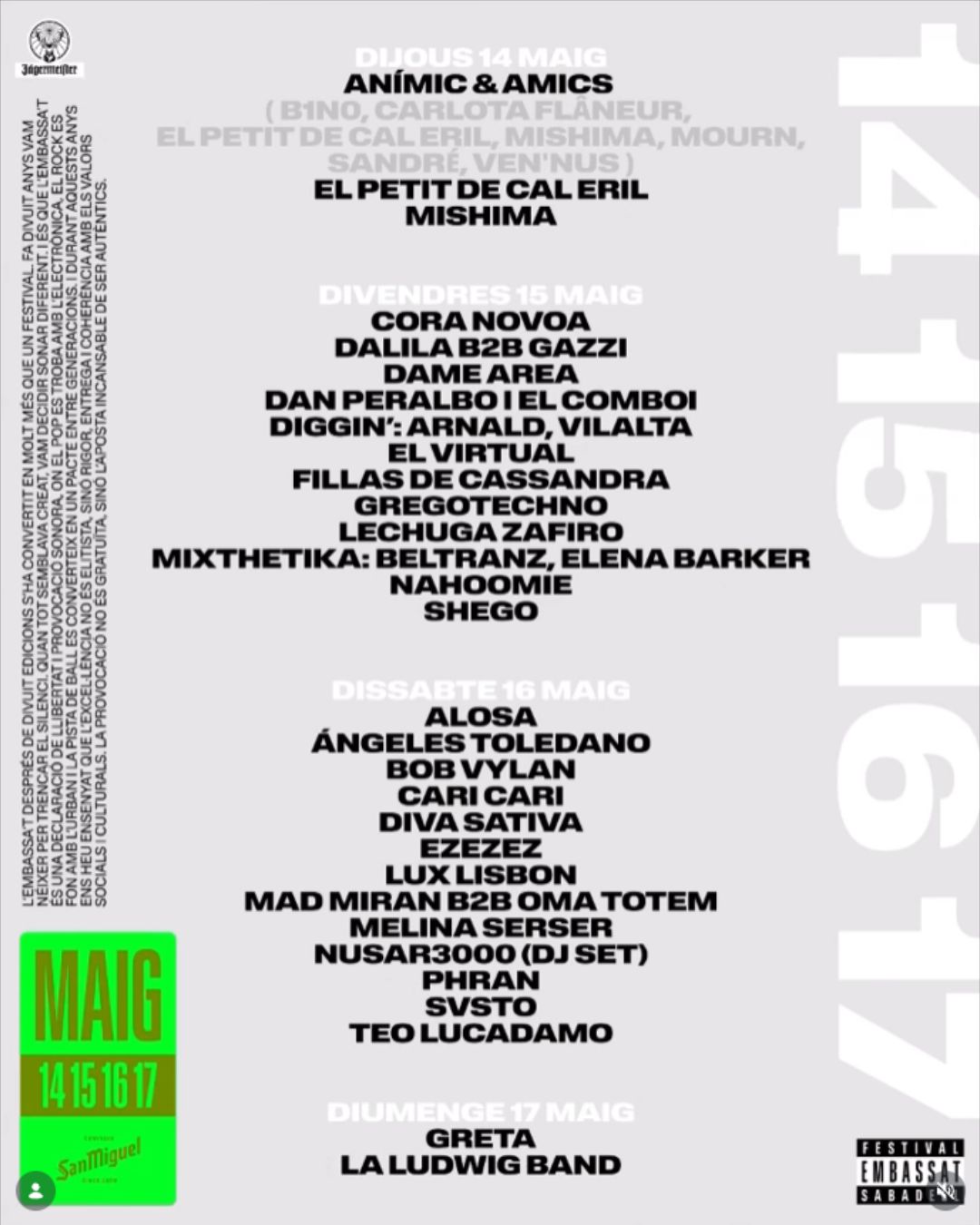 Els pròxims 14, 15, 16 i 17 de maig de 2026, Sabadell acollirà una nova edició de l’Embassa’t, el festival que s'ha consolidat com un punt de trobada imprescindible per als amants de la música independent, electrònica i emergent.